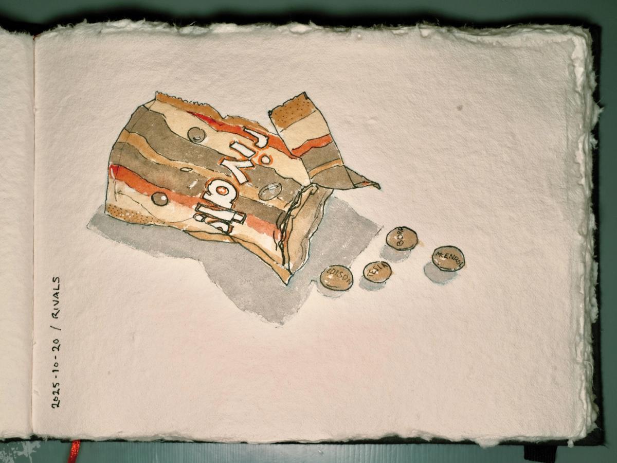 A late night entry to the Inktober ball — inspired by a popular chocolate brand.