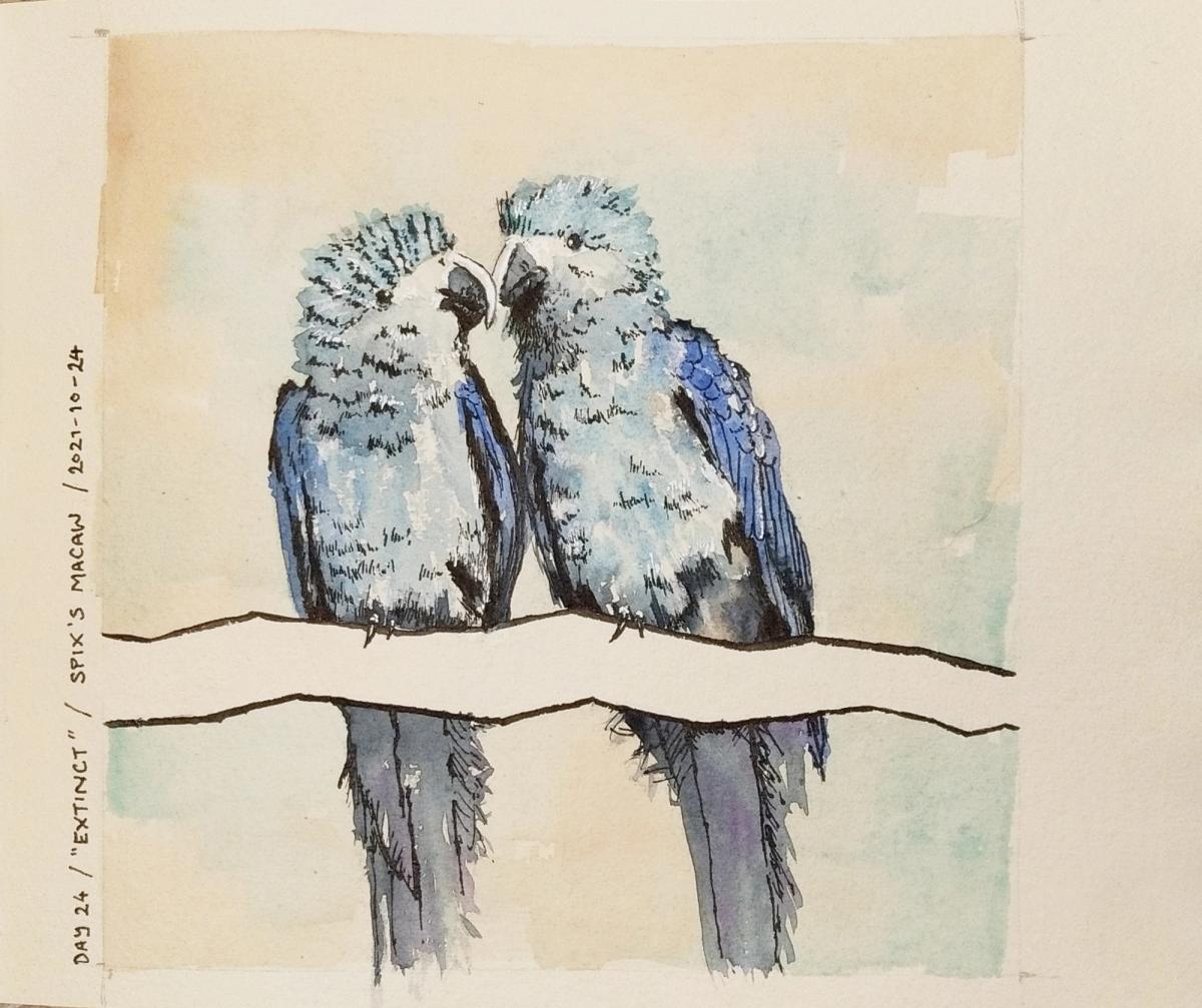 #inktober #inktober2021 #penandink #spixsmacaw #watercolour #watercolor